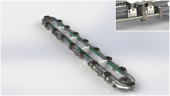 在承受壓力的工位設(shè)置必要的支撐部件,能夠有效抵消壓力給軌道和滾輪的損傷,避免長期單點作用帶來的“水滴石穿”,極大的提升環(huán)形導軌的應(yīng)用場合。